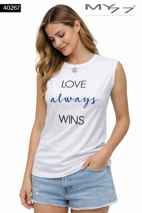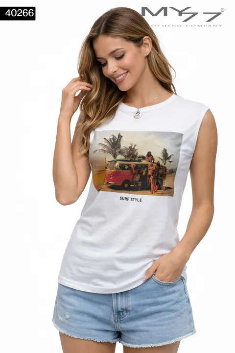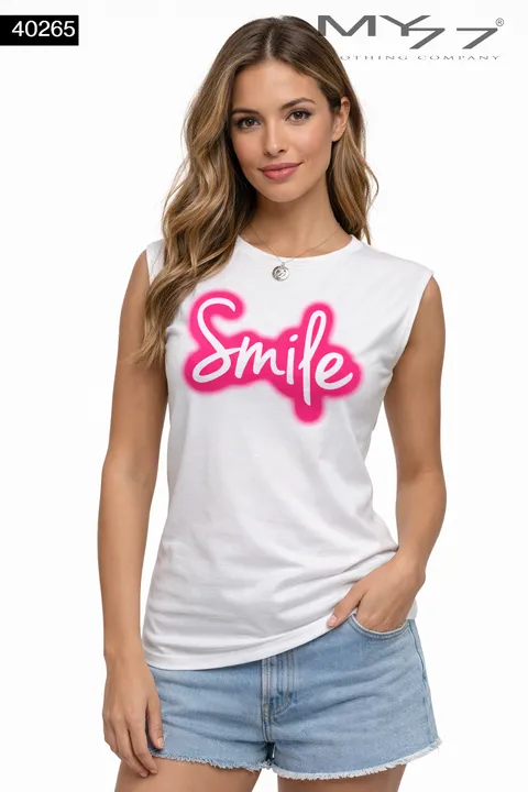 MY77 Fehér Női Ujjatlan Top „Smile Everyday” Mintával – 40268
