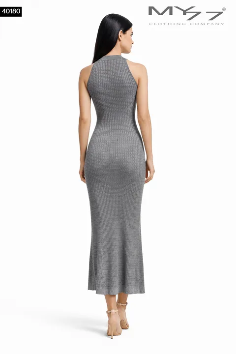 MY77 Bordázott Maxi Ruha – szürke