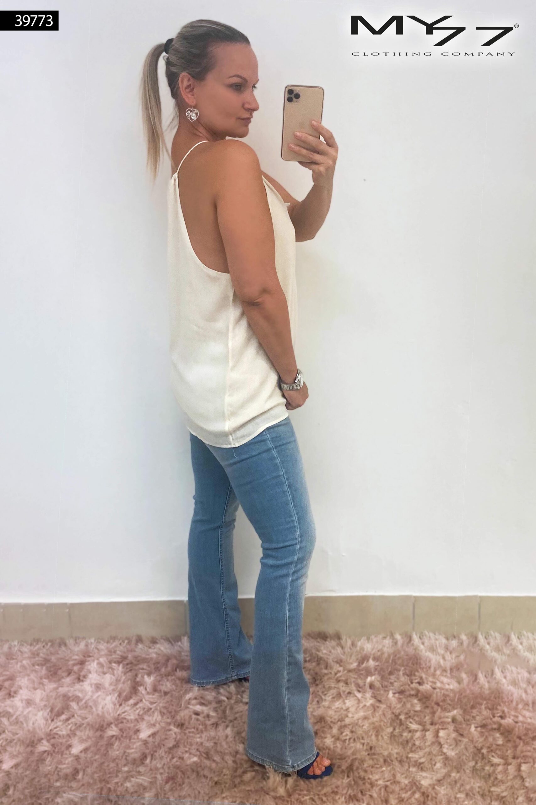 Stílustipp: Viseld világoskék farmerrel, natúr színű szandállal és fonott táskával egy igazi boho-chic összeállításhoz! Hűvösebb estéken dobd fel egy rövid farmerdzsekivel vagy fehér blézerrel.