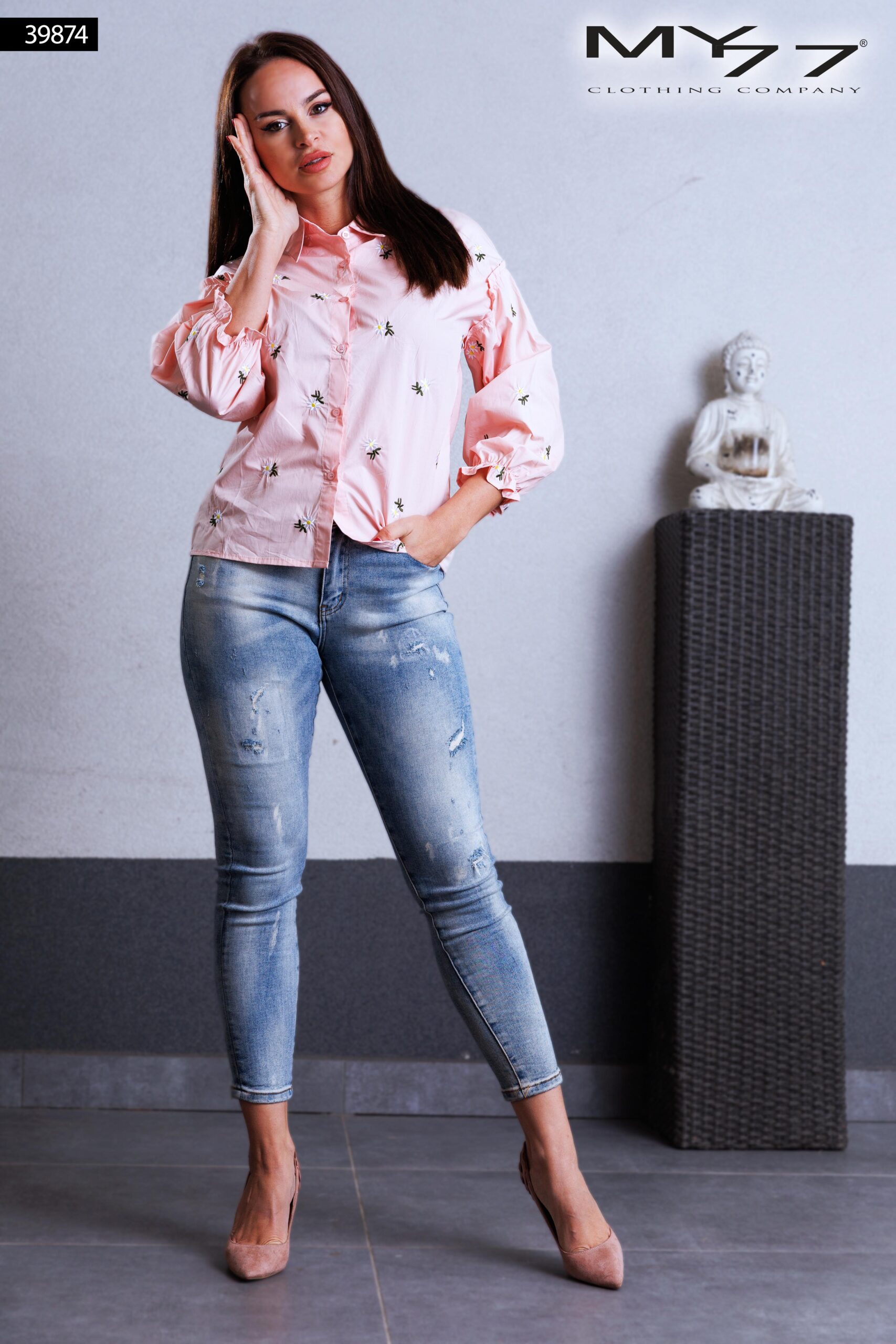 39874 – MY77 Rózsaszín virágmintás ing