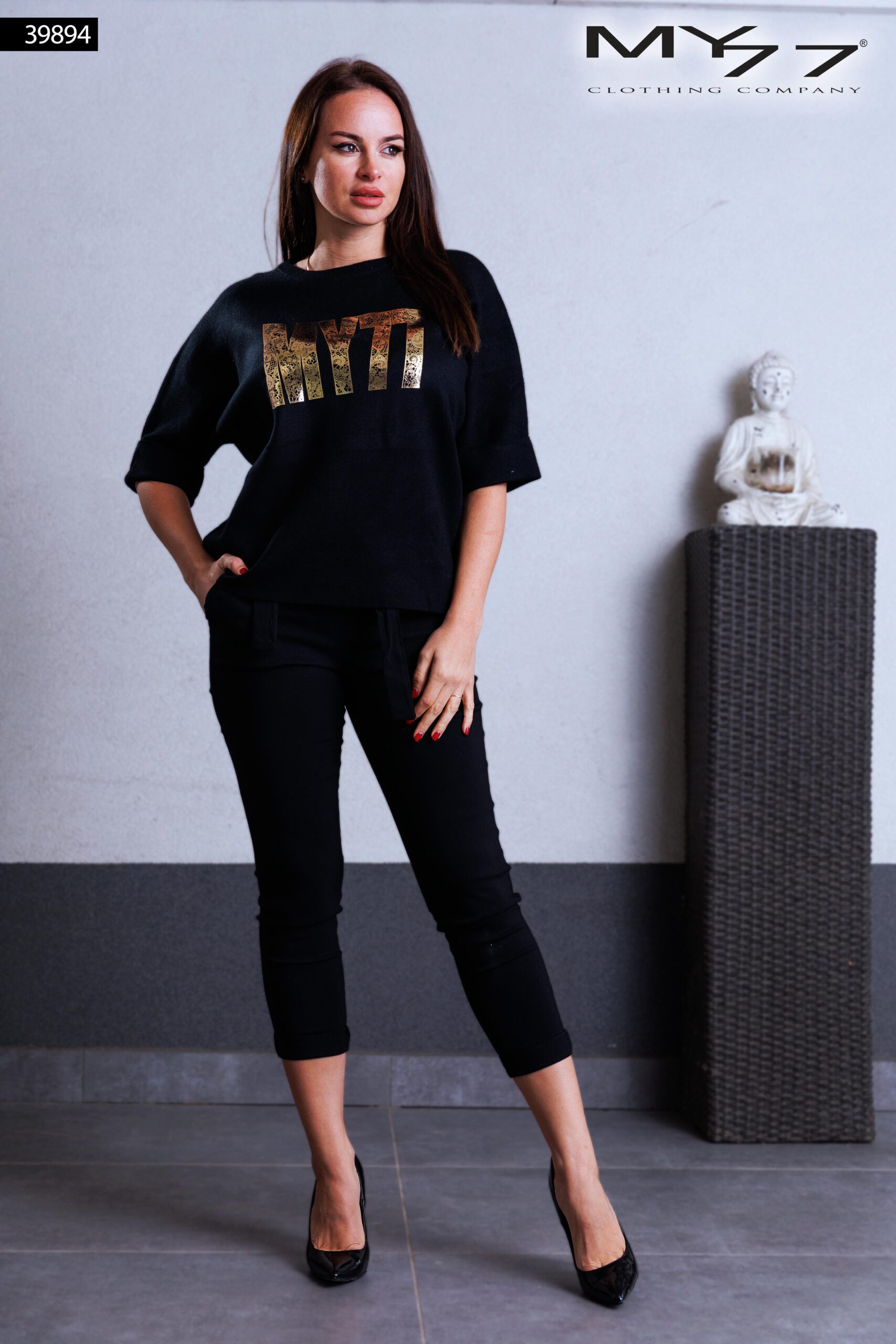 39894 – MY77 Fekete rövid ujjú felső arany logóval