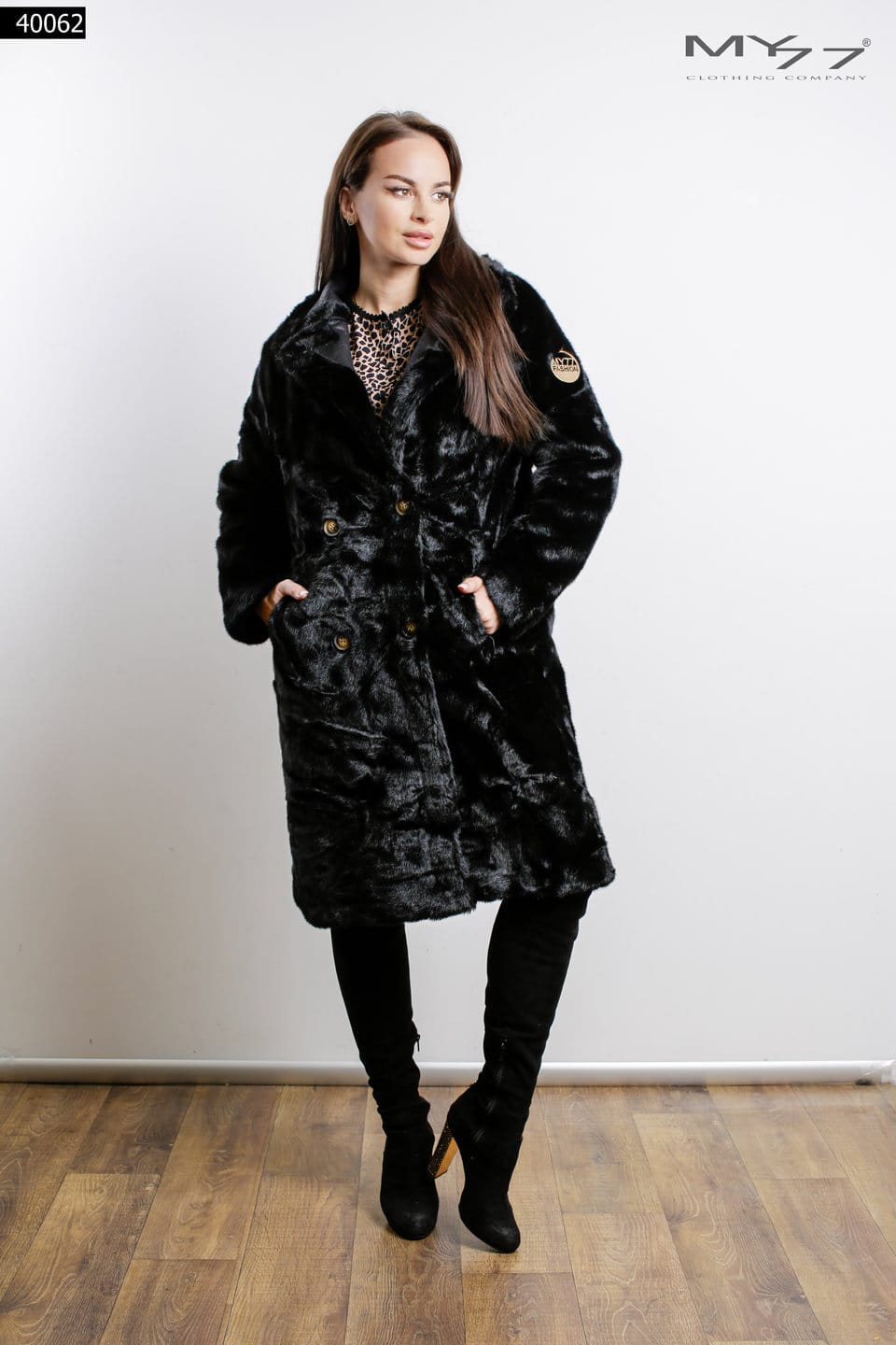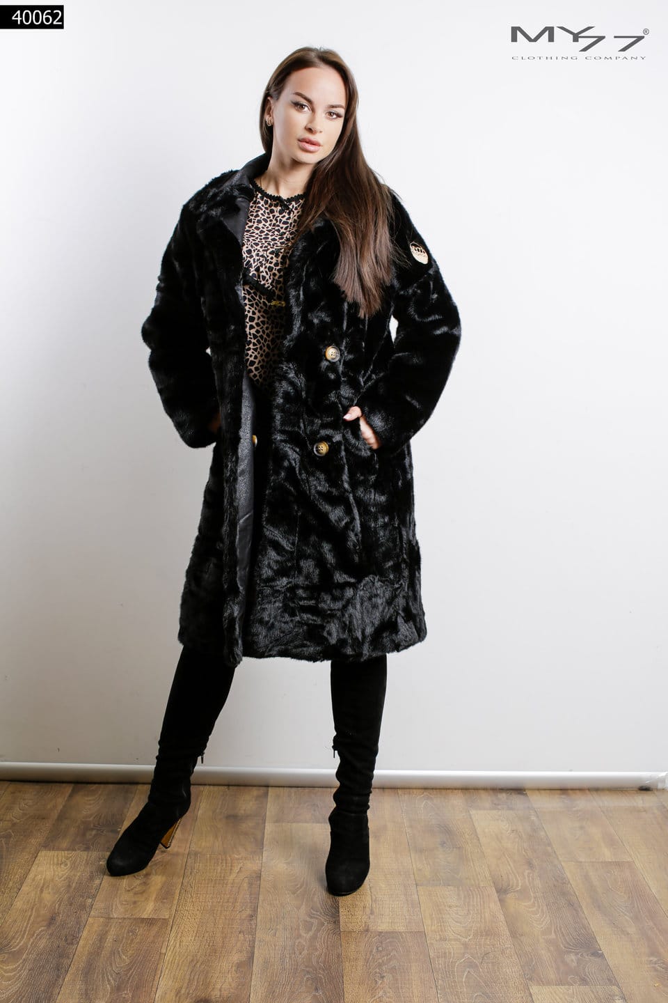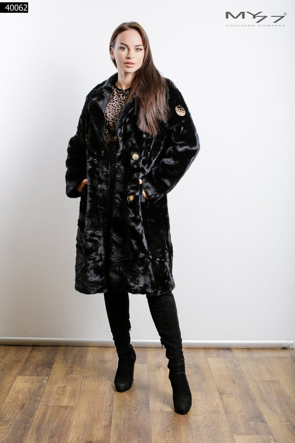 MY77 Fekete műszőrme kabát aranygombokkal – 40062