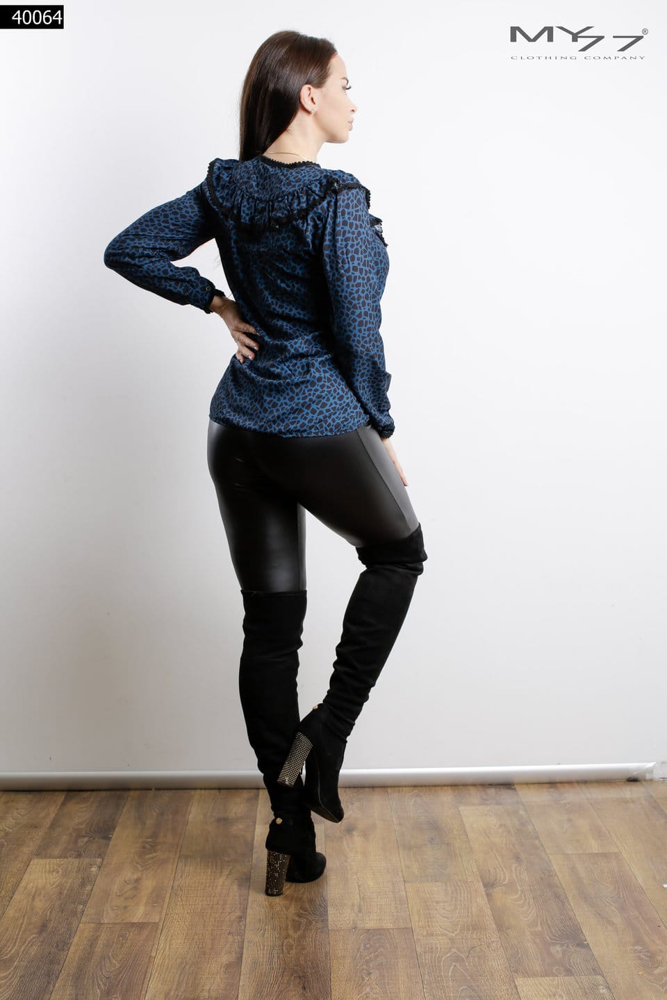 MY77 Kék–fekete állatmintás, fodros felső – 40064