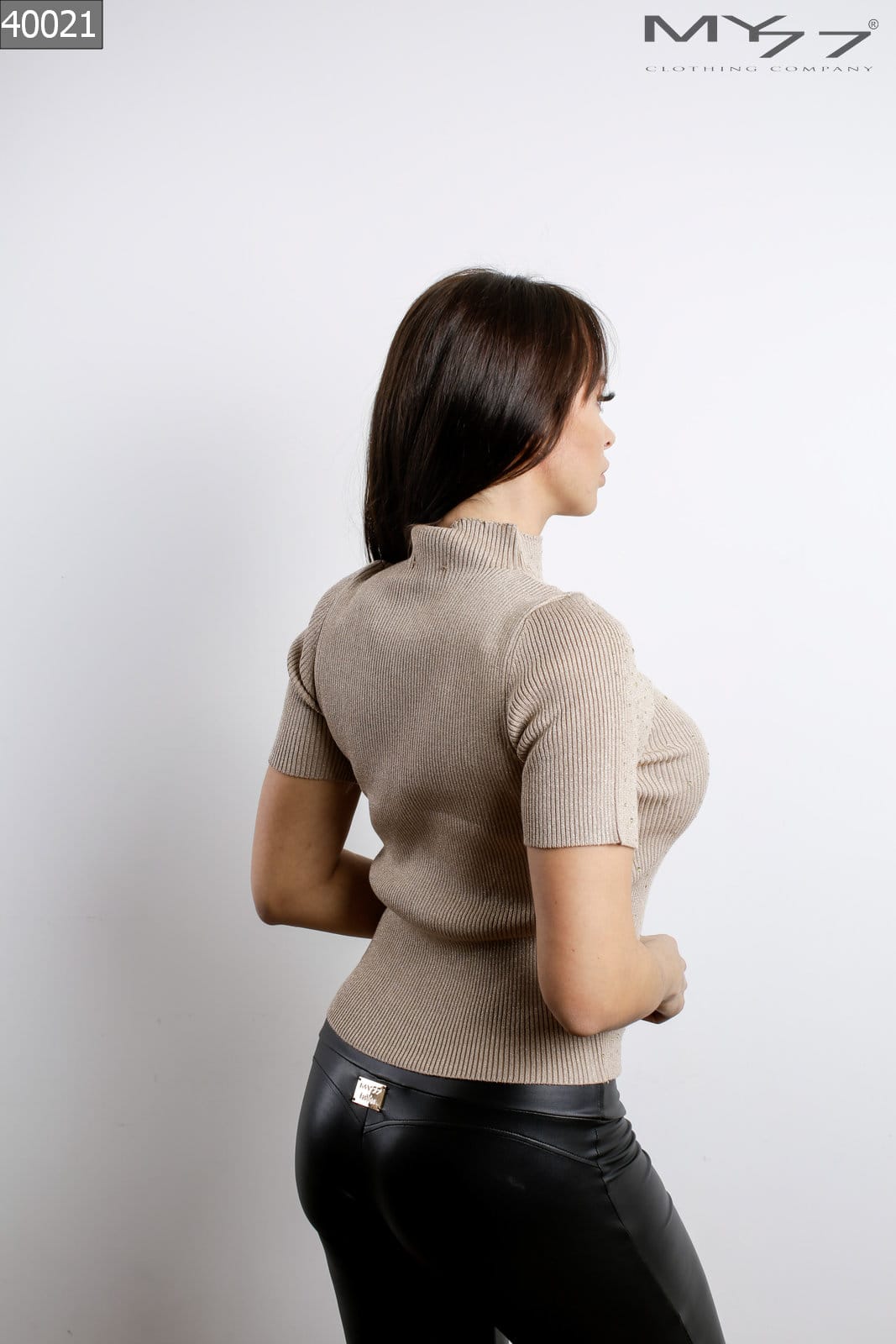 Elegáns, mégis kényelmes – a MY77 strasszos rövid ujjú felső tökéletes választás, ha szereted a nőies, visszafogottan csillogó megjelenést. A finoman rugalmas, bordázott anyag gyönyörűen követi az alakot, a diszkrét strasszkövek pedig elegáns fényt adnak minden mozdulatnak. A magasított nyakrész és a MY77 arany embléma a márka kifinomult stílusát tükrözik.