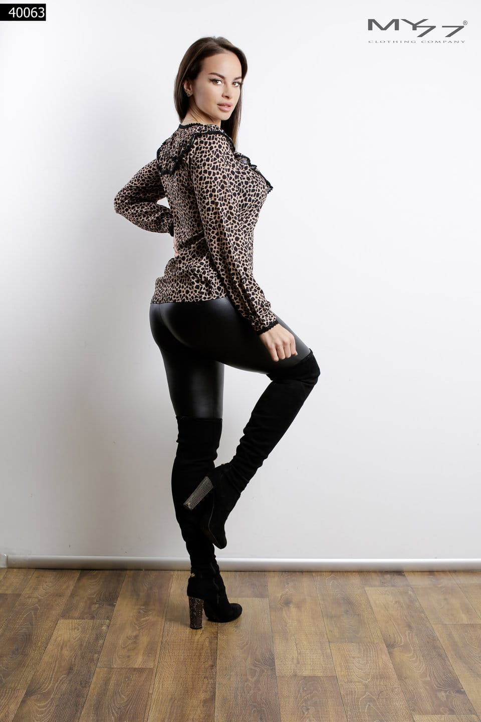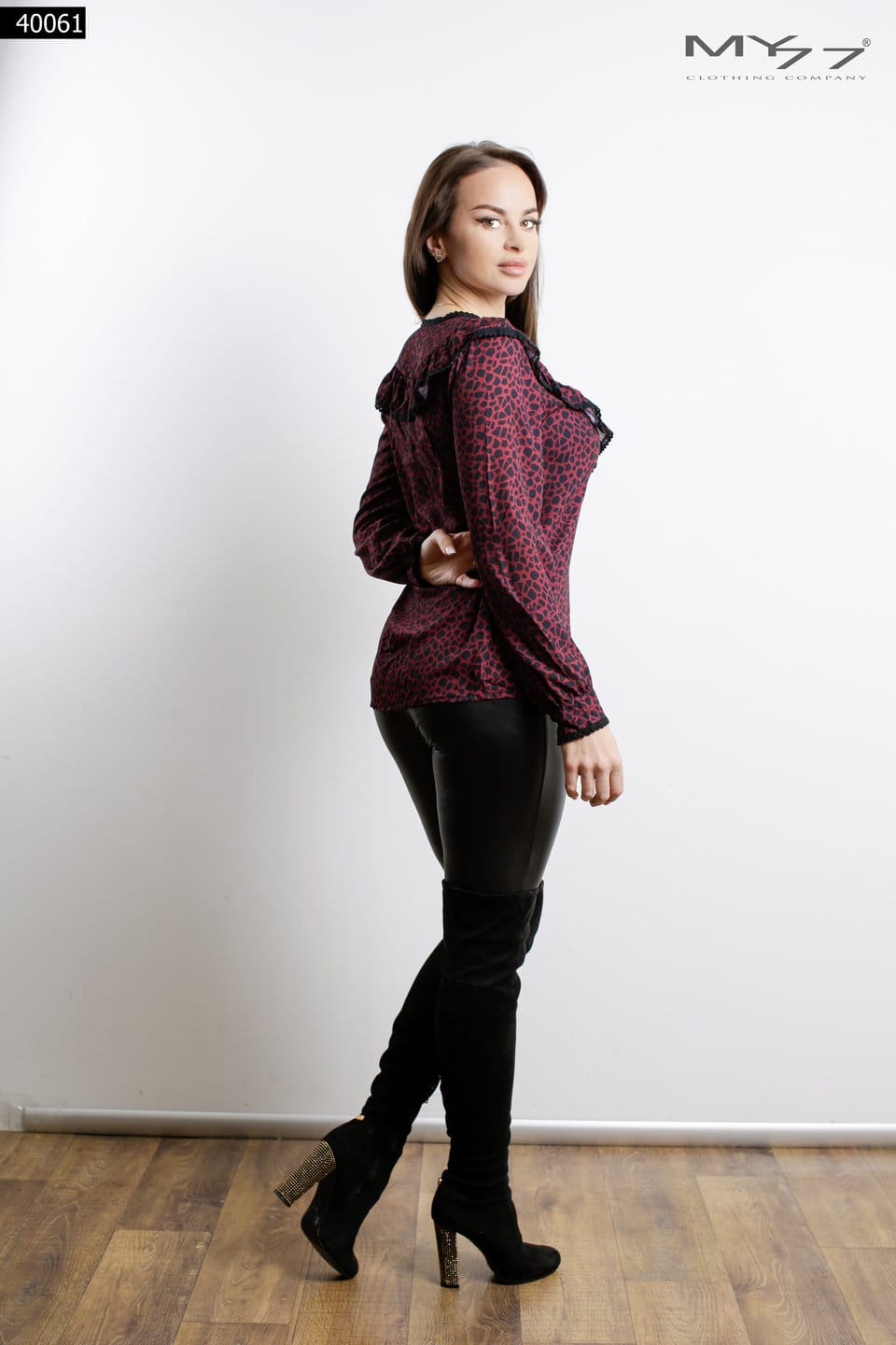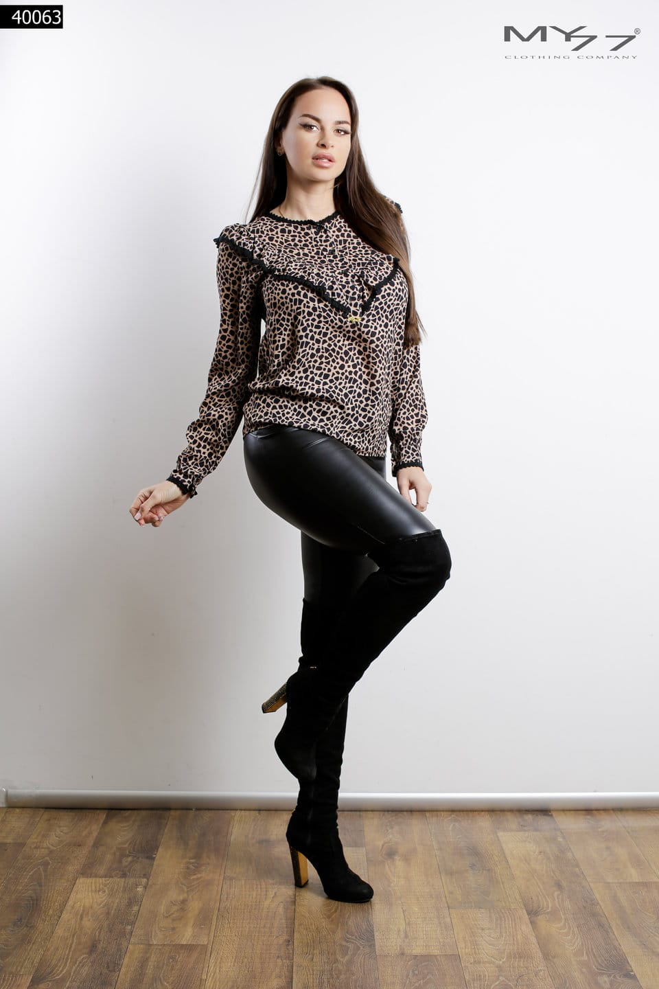 Selyemfényű, lágy esésű MY77 felső, amely azonnal elegáns, nőies hatást ad. A mély V-kivágás és az átlapolt, redőzött mellrész szépen nyújtja a felsőtestet, a deréknál bővülő […]