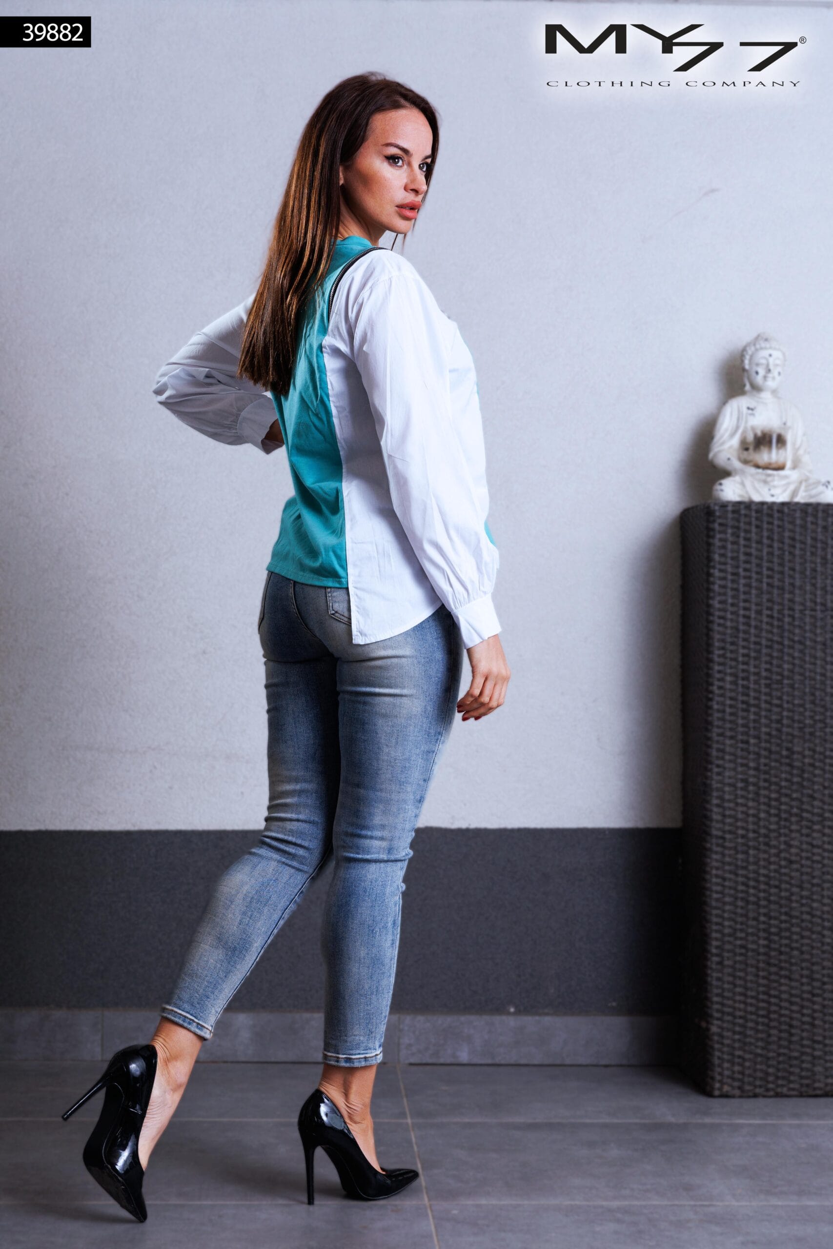 Ez a MY77 felső a klasszikus fehér ing stílusát ötvözi egy friss, türkiz betéttel, amely különleges és modern megjelenést biztosít. A fehér hosszú ujj és gallér […]