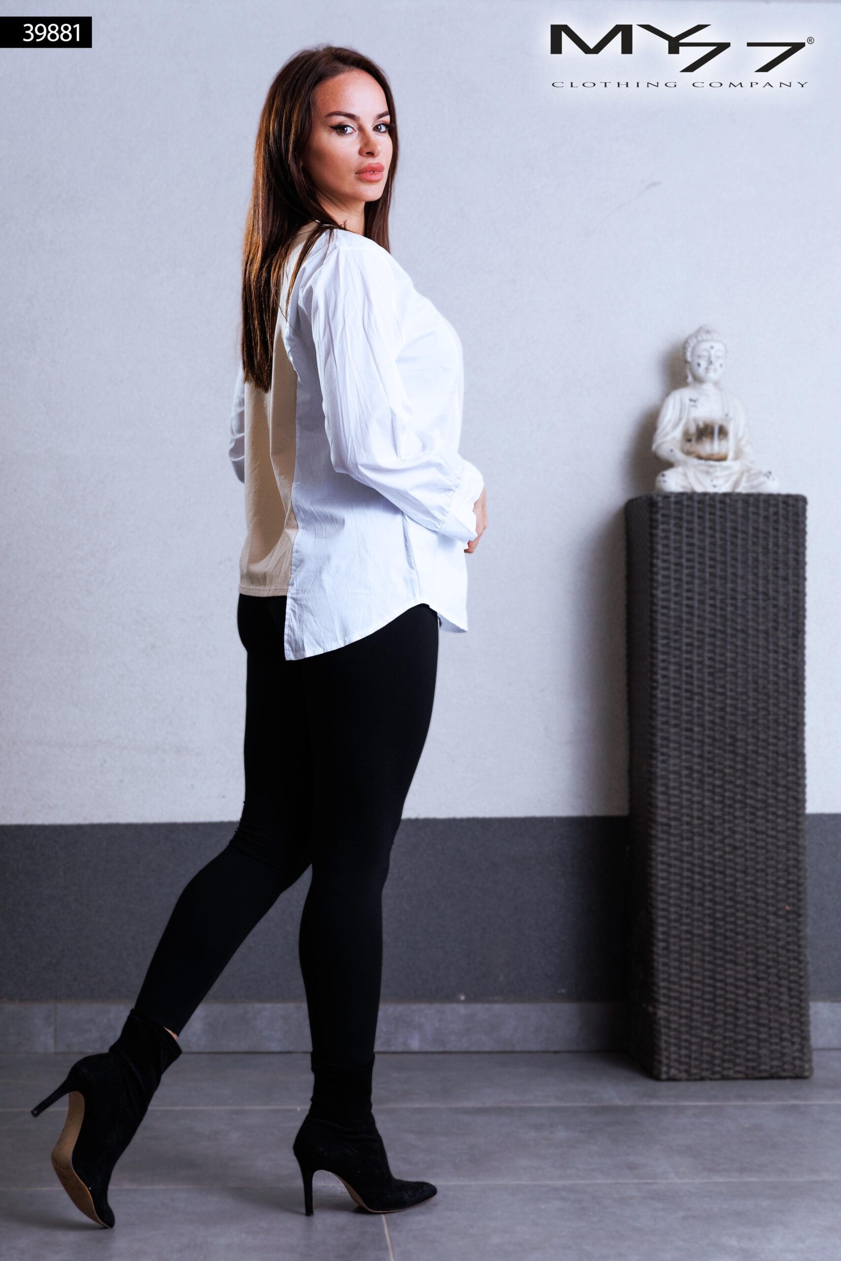 Friss, világos alapszínű MY77 ingblúz apró, játékos mintákkal díszítve, amely egyszerre sugároz könnyedséget és nőiességet. A bővebb ujjrész rugalmas mandzsettával záródik, így modern, romantikus hangulatot kölcsönöz […]
